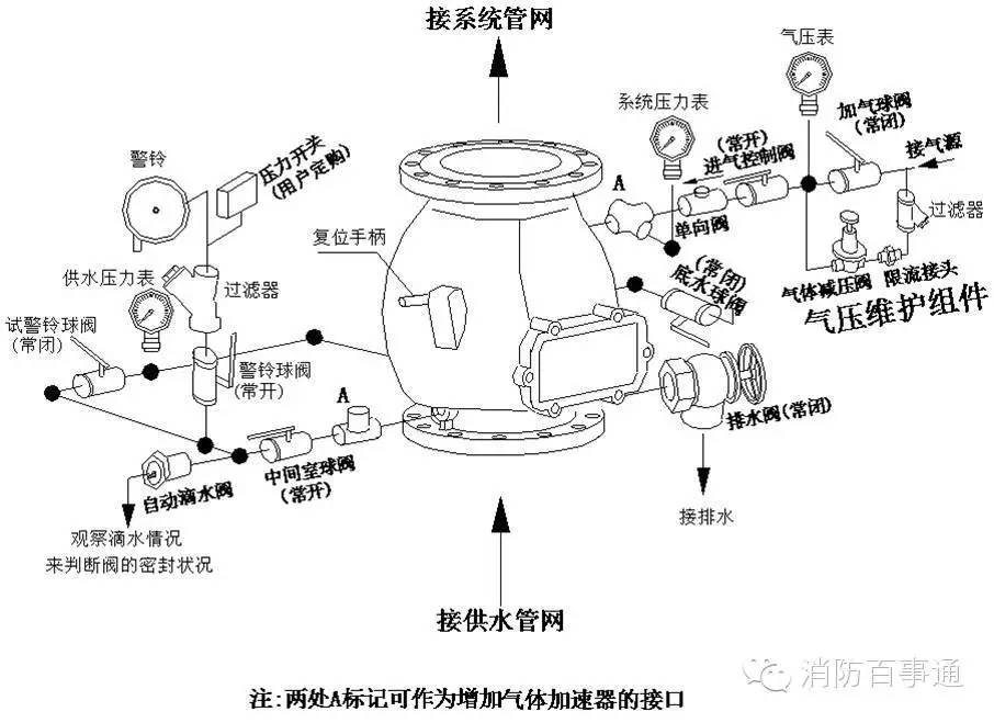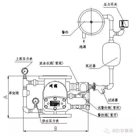 3、方便維修調(diào)試,應(yīng)在干式閥前后安裝閥前供水控制閥和閥后控制閥。